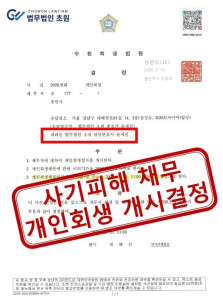 [개시결정] 사기 피해로 채무가 발생한 의뢰인, 개인회생 개시결정