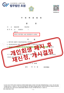 [개시결정] 개인회생 폐지 후 재신청 의뢰인, 개시결정 성공